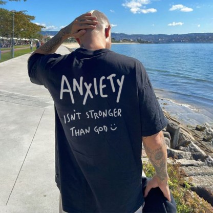 Anxiety Isn't Stronger Than God Print T-shirt
